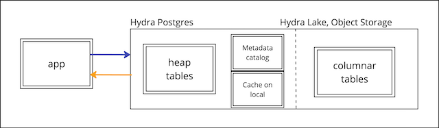- Columnar tables from Hydra Lake are cached to Postgres.